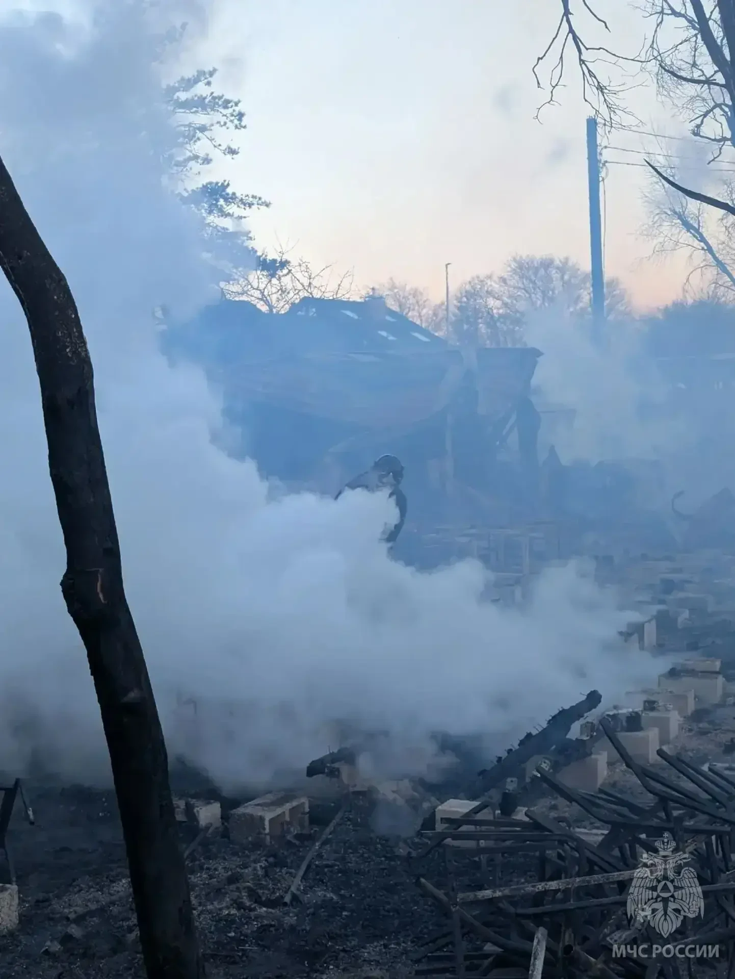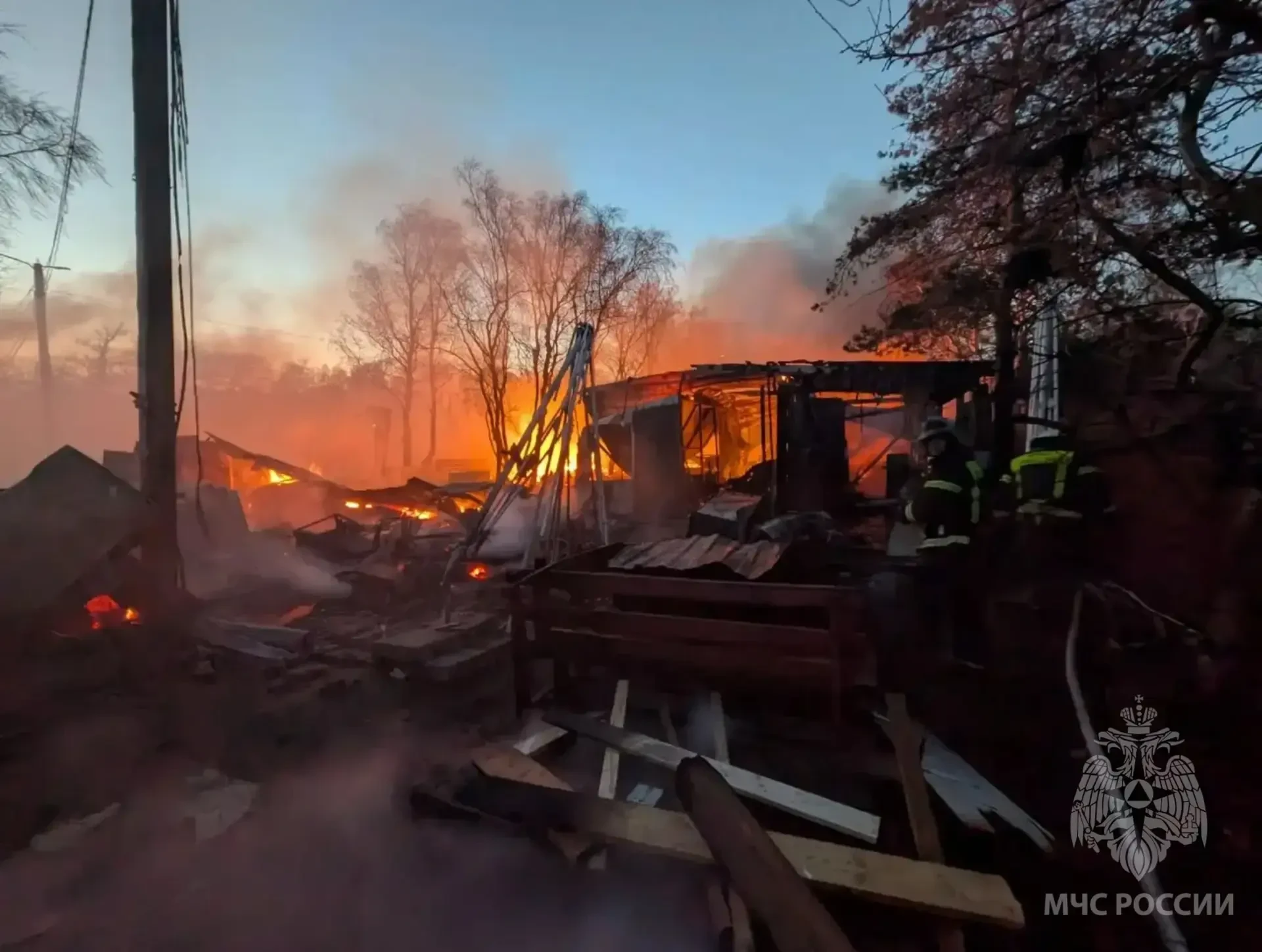 На Куршской косе в посёлке Лесной в понедельник, 27 апреля 2026 года, пламя охватило территорию как минимум двух кафе .
