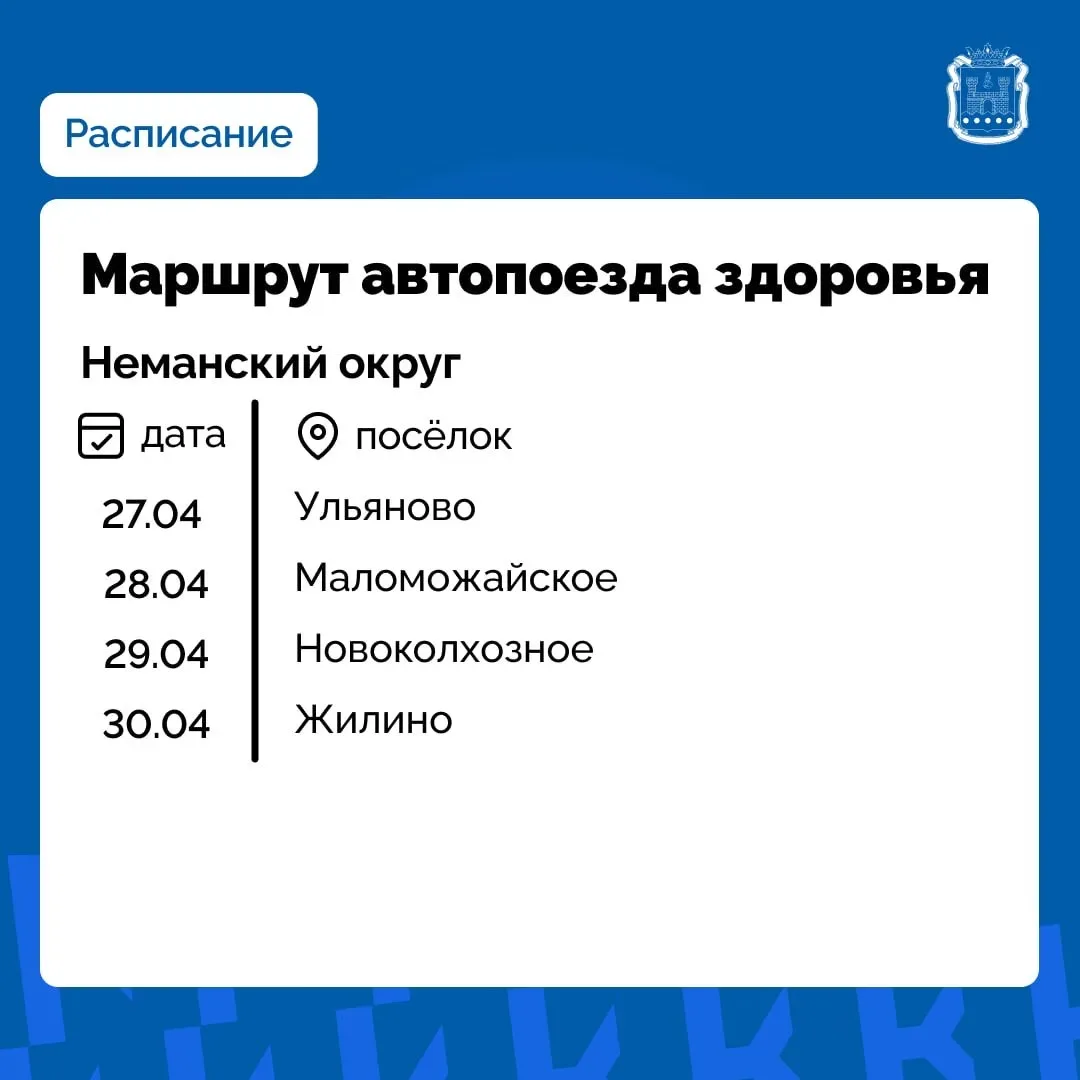 Расписание для посёлков Зеленоградского и Неманского округов – в карточках