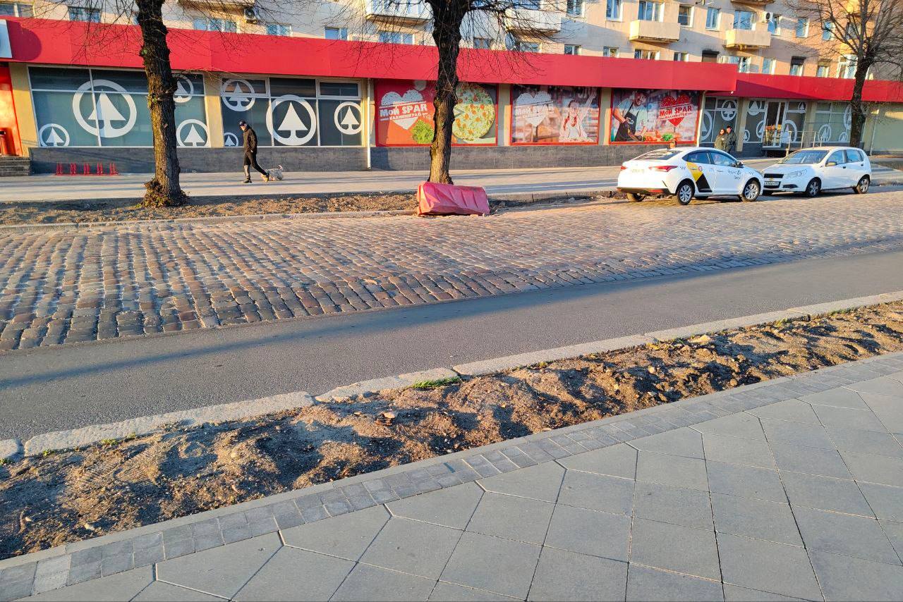 Работы выполняет ООО «Вираж» за 57,2 миллиона рублей. Специалисты практически полностью завершили мощение тротуара от Ленинского проспекта до улицы Эпроновской. Подрядчик убрал старое покрытие и уложил новую плитку.