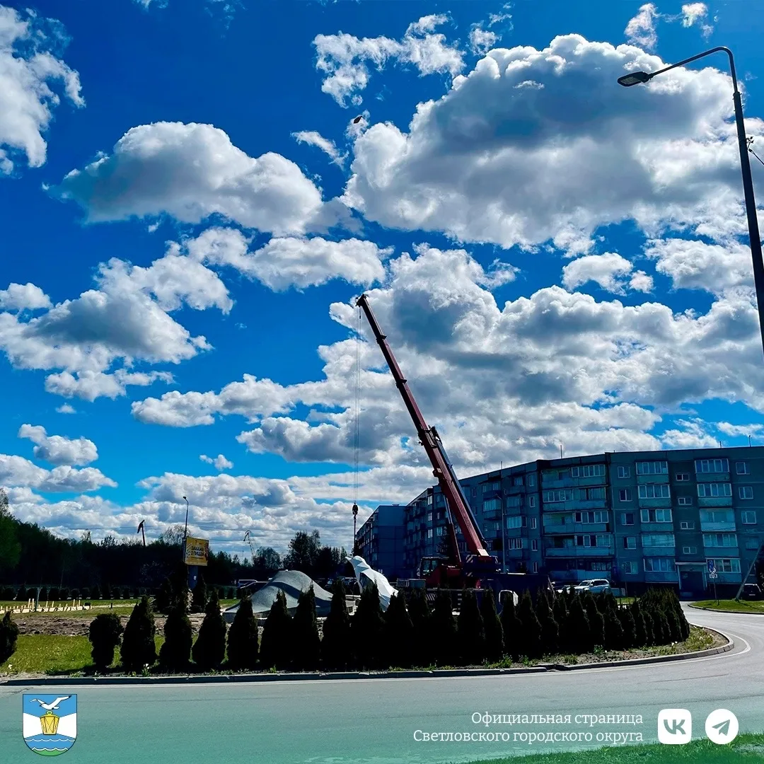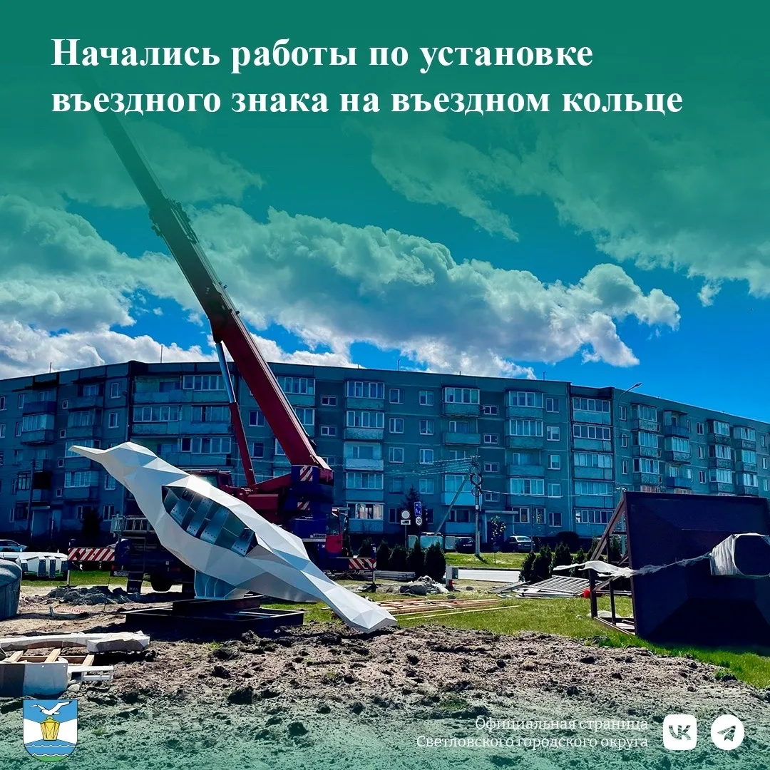 В Светлом начались работы по установке тематического въездного знака на въездном кольце.