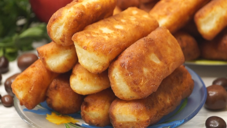 Далее следует разделить тесто на небольшие части. Из каждого куска формируется жгутик диаметром примерно 1 см, который нарезается на кусочки длиной от 7 до 10 см. Эти брусочки готовятся на сковороде в разогретом растительном масле, обжариваясь до румяной корочки с обеих сторон. После жарки рекомендуем выложить их на бумажное полотенце, чтобы избавиться от лишнего жира.