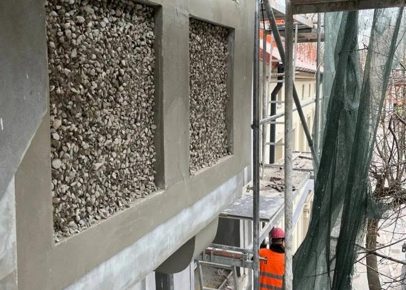 По сообщению Фонда капитального ремонта Калининградской области, нестандартный подход применили во время фасадных работ на Школьной, 9 . Чтобы вернуть аутентичную зернистую фактуру, специалисты покрыли стену слоем мелких камней . Гравий сажали на штукатурку вручную, фиксировали клеем, а потом покрывали краской . Такой же приём использовали при отделке хрущёвок в СССР — дёшево, фактурно и, как выясняется теперь, долговечно .