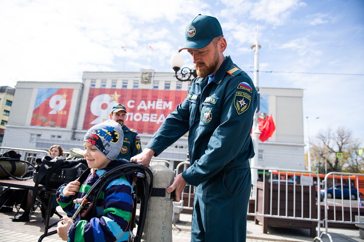 Программу для горожан подготовили насыщенную. Можно было не только смотреть со стороны, но и почувствовать себя пожарным: примерить форму и пострелять водой из настоящего брандспойта.