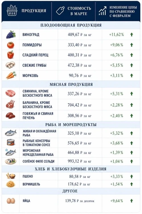 В Калининградстате рассказали, какие продукты больше всего подорожали и подешевели в регионе в марте. А мы подготовили удобную инфографику: яйца опять не радуют!