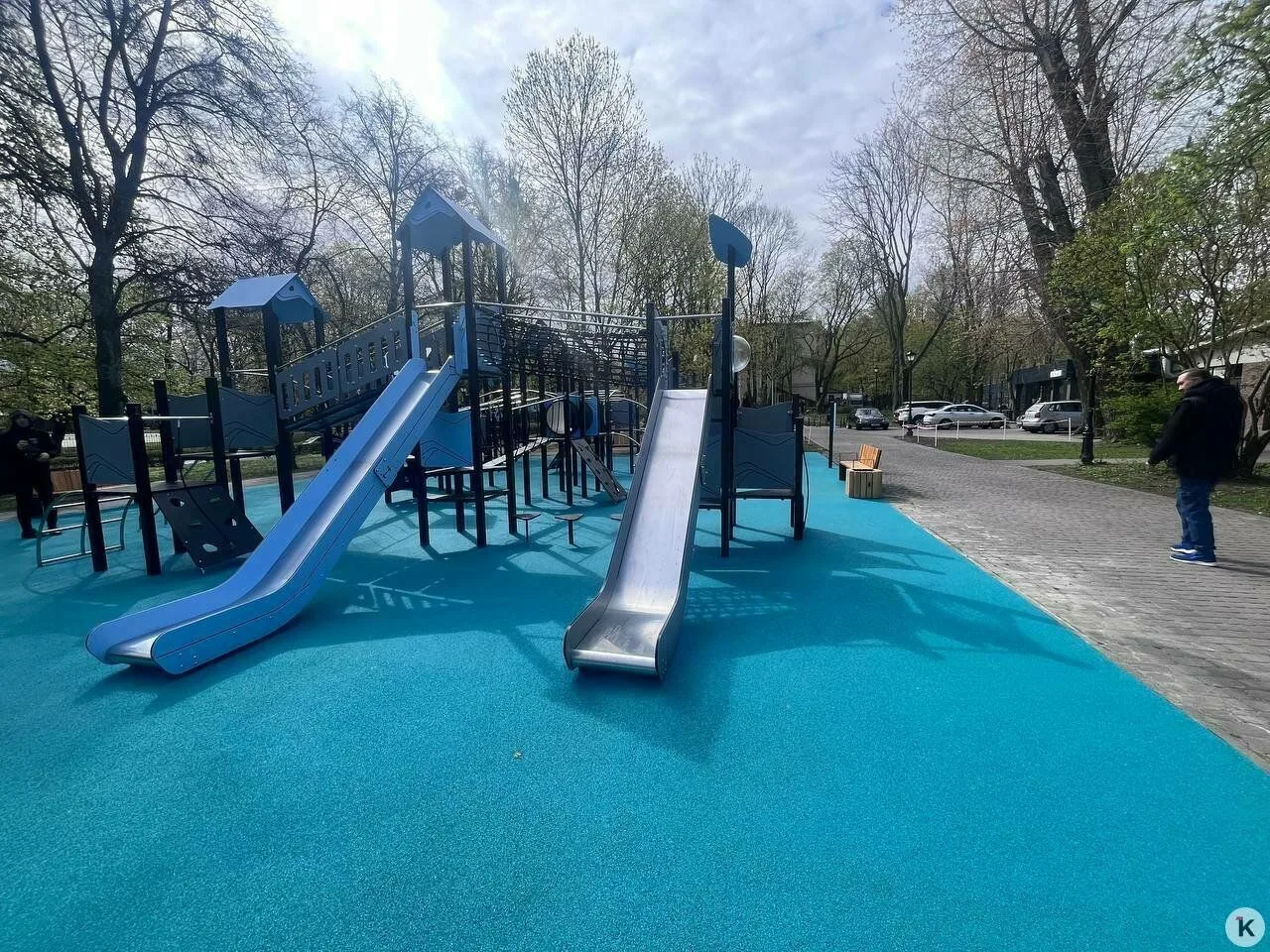 Площадку в районе улицы Киевской привели в порядок: уложили мягкое покрытие, установили спортивные снаряды и благоустроили территорию вокруг