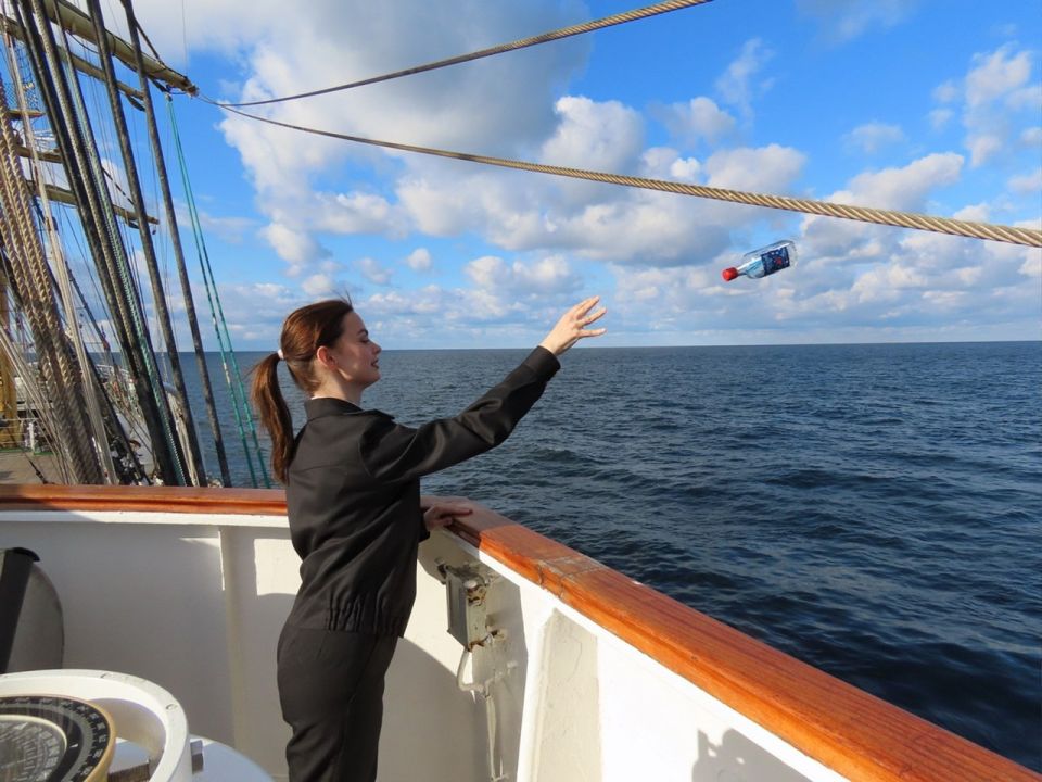 Калининградский парусник «Крузенштерн» продолжает третий рейс навигации этого года с курсантами-практикантами на борту. Барк бороздит воды Балтийского мора и одной из фишек нынешнего плавания стала бутылочная почта, отправленная с борта.Как сообщает...