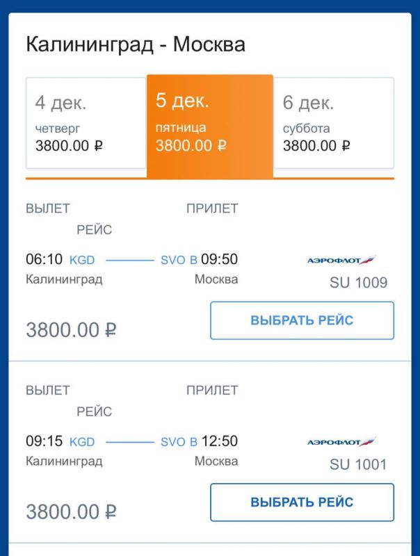 Льготные билеты можно купить на даты после 1 декабря 2025 года.Согласно ценам на сайте, дорога до Москвы обойдется жителю Калининградской области в 3800 рублей. Столько же нужно будет отдать за обратный рейс. Билет до Санкт-Петербурга обойдется в 3500...