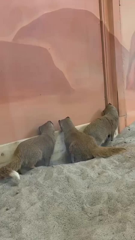 Сотрудники сняли на видео, как забавные зверьки роют лапками песок, ищут угощения, а потом приступают к обеду. И посетовали: не все гости зоопарка замечают мангустов из-за их соседей — сурикатов:— Друзья, доходите...